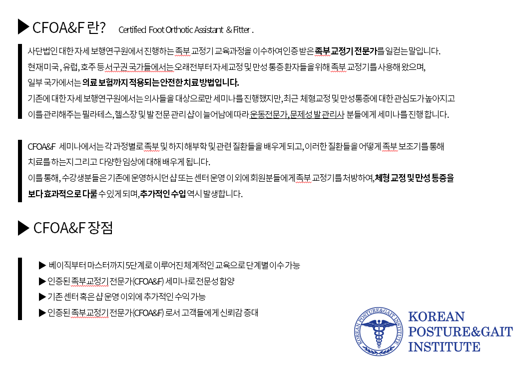 CFOA/F (인증된 족부 교정기 전문가) 소개