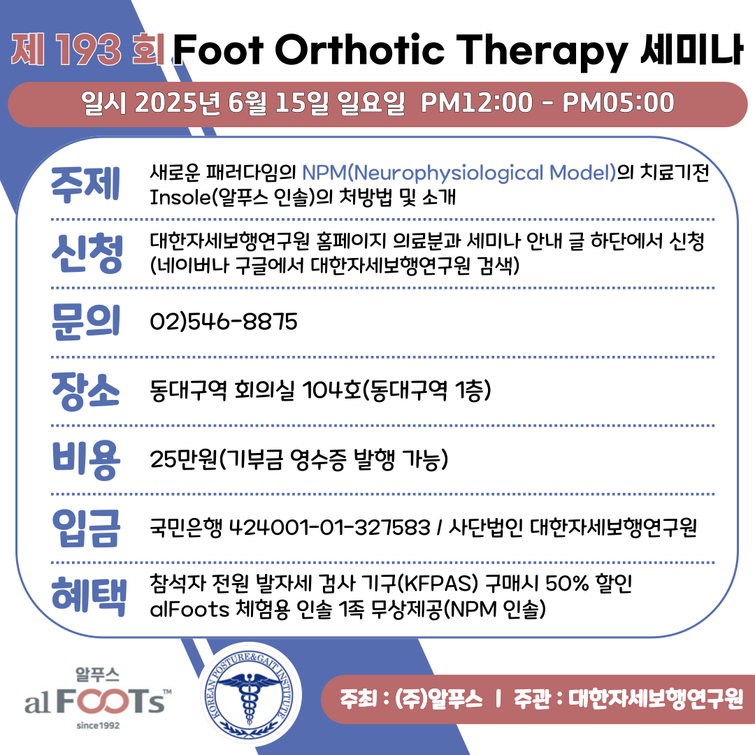 제193회 대한자세보행연구원 Foot Orthotic Therapy 대구세미나